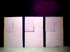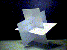 | 評 | (1)名刺を3枚用意します。 (2)写真のようにはさみ,カッターなどで切ります。 切り口は,名刺が入るように, 名刺の厚さ(0.5mm)ほどの溝にすることがポイント。 (3)うまく組み合わせて,写真のような立体を完成させてください。 製作はとても簡単ですから,ぜひ1度作ってください。 名刺は黄金長方形になっています。 出来た立体の頂点を結べば,正二十面体になっています。 60分で出来れば合格。 | |||
