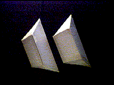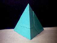 | 評 | 見た目に比べ,意外と難しいです。チャレンジしてみてください。 (1),(2)は10分で解ければ合格。 (3)はいじくりまわしていれば,そのうち出来ます。でも,意外と難しい。Edward T. Johnson作のパズルだそうです。 正四面体の四本の辺の中点を通って切ったときの切断面(何と正方形になる)の学習に最適。 (4)は友達のアメリカ土産です。BINARY ARTS CORPORATION の 4 PIECE PYRAMID | ||||||||||||||||||||